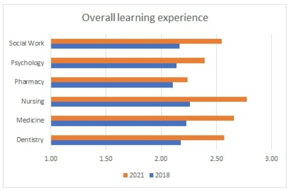Abb. 1: Bewertung der Lernerfahrung im Vergleich der Jahre 2021 und 2018