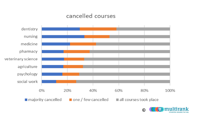In einer ersten Auswertung im März 2021 für Deutschland zeigten Befragungen aus dem Wintersemester 2020/2021 im Rahmen des CHE Hochschulrankings und U-Multirank, dass an deutschen Hochschulen der Vorlesungs- und Prüfungsbetrieb mit der Umstellung auf teilweise oder vollständig digitale Studienangebote weitgehend aufrecht erhalten blieb. Die Studierenden bewerteten das Pandemiemanagement der Hochschulen entsprechend überwiegend positiv. Viele der befragten Studierenden gaben an, dass sie trotz der Einschränkungen das Studium in vielen Fächern ohne größere Probleme fortsetzen konnten.