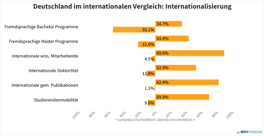 U-Multirank 2022: Deutsche Hochschulen Weltklasse in der internationalen Ausrichtung 21. Juni 2022 von Gero Federkeil Pressemitteilungen, Studium & Lehre, U-Multirank Deutsche Hochschulen schneiden im weltweiten Vergleich hinsichtlich ihrer internationalen Ausrichtung hervorragend ab. Das zeigt die neue Ausgabe des globalen Hochschulrankings U-Multirank, die heute mit den aktuellen Ergebnissen erschienen ist. Insgesamt liegen die deutschen Hochschulen bei zwei Drittel aller Werte der Internationalisierungs-Indikatoren über dem weltweiten Durchschnitt. Die Technische Universität München sowie mehrere private Hochschulen, die Kühne Logistik University, die Jacobs University, die Frankfurt School of Finance & Management und die WHU- Otto Beisheim School of Management, sind bei allen Kriterien, die für Internationalität erhoben wurden, in den Topgruppen. Es folgen die Universitäten in Siegen und Konstanz sowie die Universität des Saarlandes mit jeweils fünf Topplatzierungen. Abschneiden der deutschen Hochschulen in der Dimension Internationalisierung. Ausgewiesen ist der Anteil der deutschen Hochschulen in den beiden Top-Ranggruppen A und B (überdurchschnittlich) und der Anteil in den unteren Ranggruppen D und E (unterdurchschnittlich) in Prozent. Blickt man auf die einzelnen Aspekte der Internationalität, zeigt sich, dass das Angebot fremdsprachiger Studiengänge nicht zu den Schwerpunkten der Internationalisierungsstrategien der deutschen Hochschulen zählt. Bei den Bachelor-Programmen liegt die Mehrzahl der Werte sogar unter dem Durchschnitt. Umso stärker präsentieren sich die deutschen Hochschulen bei den weiteren Indikatoren: 90 Prozent aller deutschen Hochschulen haben einen überdurchschnittlichen Anteil an wissenschaftlichem Personal aus dem Ausland. An 82 Prozent wird intensiv mit Forschungsgruppen über Deutschlands Grenzen hinaus gearbeitet, was sich an den überdurchschnittlich hohen Zahlen an gemeinsamen internationalen Ko-Publikationen zeigt. Und auch wenn der internationale Austausch weltweit unter der Pandemie gelitten hat, schneiden die deutschen Hochschulen in der Studierendenmobilität, bei der U-Multirank sowohl aus dem Ausland kommende als auch ins Ausland gehende Studierende berücksichtigt, ebenfalls sehr gut ab: 70 Prozent überdurchschnittlich aktiver Hochschulen stehen nur 10 Prozent unterdurchschnittlich aktiver gegenüber. “Die Ergebnisse von U-Multirank sind ein starkes Zeichen für die Weltoffenheit der deutschen Hochschulen”, hebt Prof. Dr. Frank Ziegele, Geschäftsführer des CHE Centrum für Hochschulentwicklung, das sehr gute Ergebnis hervor und ergänzt: „U-Multirank zeigt auch für andere Länder in Europa, dass den Studierenden und Forschenden ein wissenschaftlicher und kultureller Blick über den eigenen Tellerrand hinaus geboten wird und eine enge europäische Vernetzung im Wissenschaftssystem funktioniert. Die weltweite Pandemie scheint glücklicherweise nicht dauerhaft etwas daran geändert zu haben.“ U-Multirank zeigt die Stärken und Schwächen der Hochschulen in einem breiten Spektrum von über 30 Indikatoren aus den fünf Dimensionen Lehre und Studium, Forschung, Wissenstransfer, internationale Ausrichtung und regionales Engagement und bildet damit nicht nur Internationalität, sondern die ganze Vielfalt der Aufgabenbereiche von Hochschulen ab. Die Ergebnisse für Deutschland in allen Dimensionen finden Sie in der folgenden Übersicht zum Download. U-Multirank 2022: Deutsche Hochschulen im internationalen Vergleich 21. Juni 2022 1.07 MB 84312 downloads U-Multirank 2022: Der Länderreport Deutschland zeigt das Abschneiden der Universitäten... Download Alle Ergebnisse von U-Multirank sind auf der interaktiven Webseite kostenfrei und ohne Registrierung zugänglich unter: www.umultirank.org. Über U-Multirank Seit der ersten Veröffentlichung von U-Multirank im Jahr 2014 hat sich die Zahl der einbezogenen Hochschulen fast verdreifacht auf nunmehr 2.202 aus 96 Ländern. In 30 fachbezogenen Rankings werden 5.574 Fachbereiche mit 11.605 Studiengängen präsentiert. U-Multirank bietet maßgeschneiderte, personalisierte Rankings und Analysen; so z.B. Länderberichte zu einzelnen Ländern. U-Multirank ist eine methodisch fundierte Alternative zu den gängigen simplifizierenden globalen Hochschulrankings. In einem multi-dimensionalen Ansatz, der auf die Berechnung von nicht zu begründeten Gesamtwerten verzichtet, werden die Hochschulen in jedem einzelnen Indikator in fünf Gruppen von „A“ (sehr gut) bis „E“ (schwach) eingestuft. So entsteht ein differenziertes Bild der Stärken und Schwächen der Hochschulen. Die zugrunde liegenden Daten beruhen auf verschiedenen Datenquellen: Daten aus nationalen statistischen Quellen, Daten der Hochschulen und Fachbereiche, Daten aus bibliometrischen und Patent-Datenbanken sowie einem Survey unter rund 100,000 Studierenden der teilnehmenden Hochschulen. U-Multirank wurde von der Europäischen Union ins Leben gerufen und wird seit 2017 gemeinsam von der EU-Kommission, der Bertelsmann Stiftung und der Banco Santander finanziert. U-Multirank ist nicht kommerziell und macht alle Ergebnisse im Internet frei zugänglich. Es wird von einem unabhängigen internationalen Konsortium unter Federführung des CHE Centrum für Hochschulentwicklung durchgeführt und weiterentwickelt. Die Partner im Konsortium sind das Center for Higher Education Policy Studies (CHEPS) an der Universität Twente, das Centre for Science and Technology Studies (CWTS) an der Universität Leiden, sowie die Fundación Conocimiento y Desarrollo (FCYD) in Barcelona.