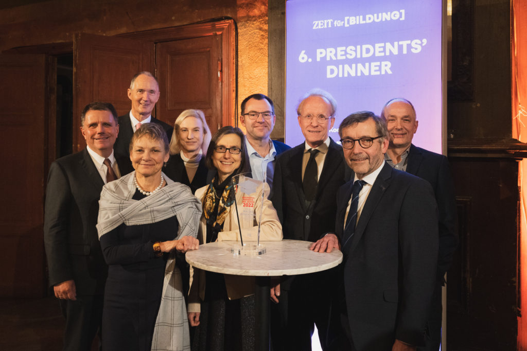 Prof. Dr. Walter Rosenthal im Kreise der Jurymitglieder v.l: Dr. Norbert Sack, Prof. Dr.-Ing. Dr. Sabine Kunst, Prof. Dr. Ulrich Radtke, Marion Schmidt, Prof. Dr. med. Simone Fulda, Prof. Dr. Frank Ziegele, Prof. Dr. Sascha Spoun, Prof. Dr. Walter Rosenthal, Martin Spiewak (Foto: Kevin Fuchs für DIE ZEIT)
