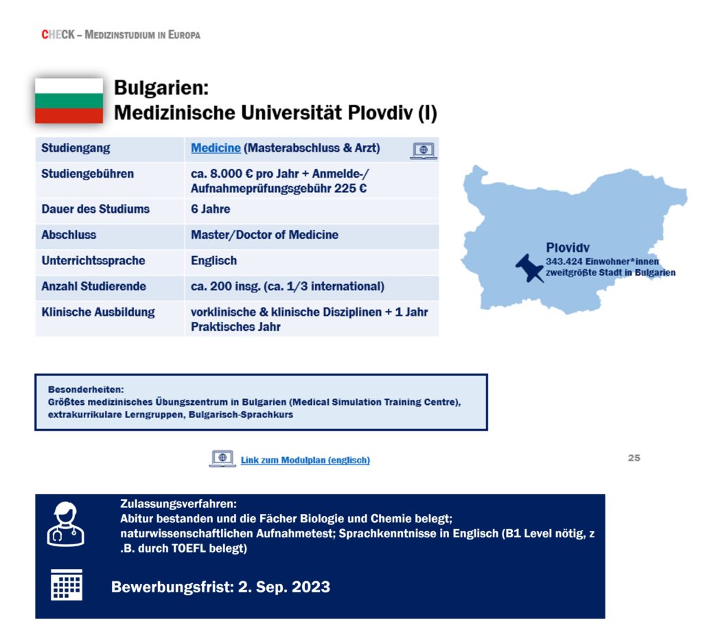 Beispielseite mit Informationen für Studieninteressierte aus dem CHECK Medizinstudium in Europa