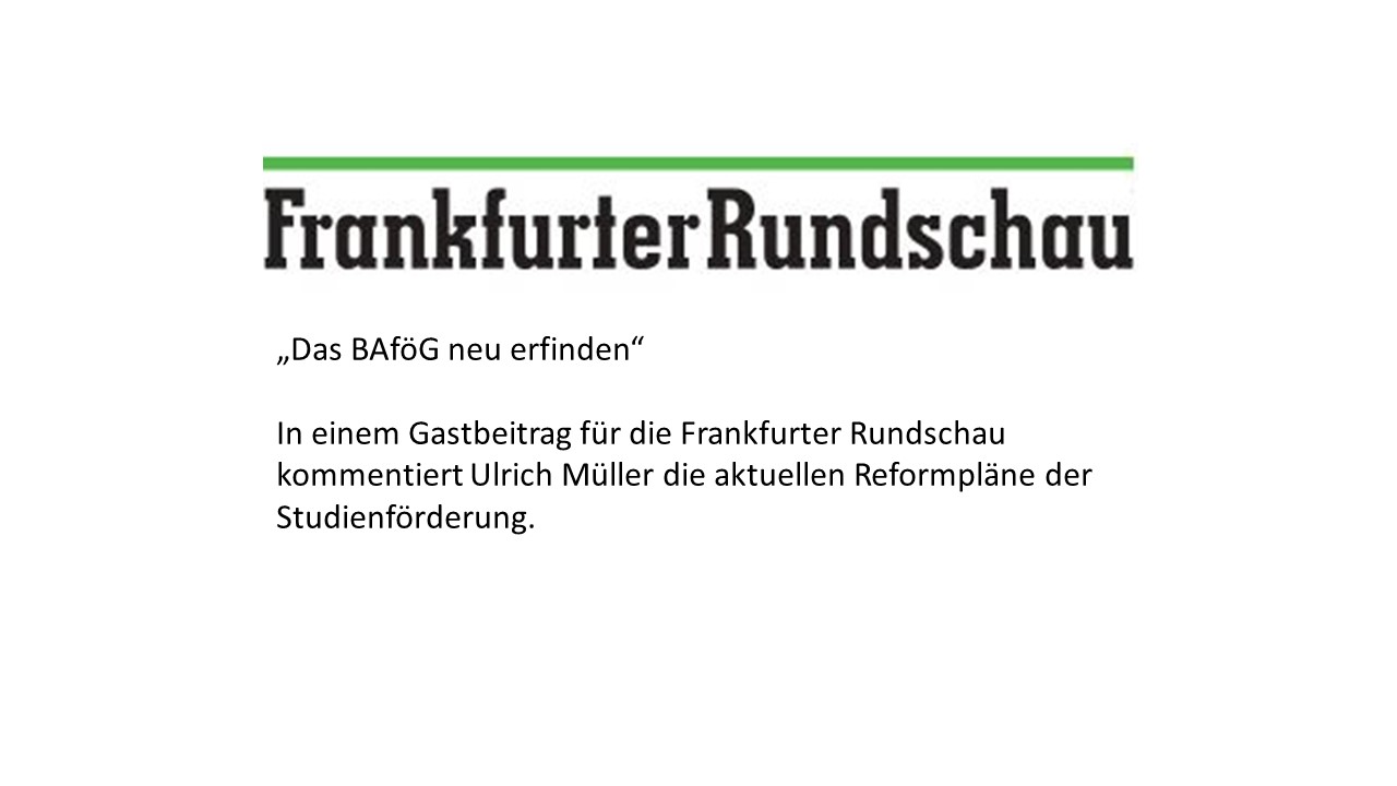 „Das BAföG neu erfinden!“ Beitrag vom 28. November 2018 von Ulrich Müller In einem Gastbeitrag für die Frankfurter Rundschau kommentiert Ulrich Müller die aktuellen Reformpläne der Studienförderung. Für den Leiter des Bereichs […]