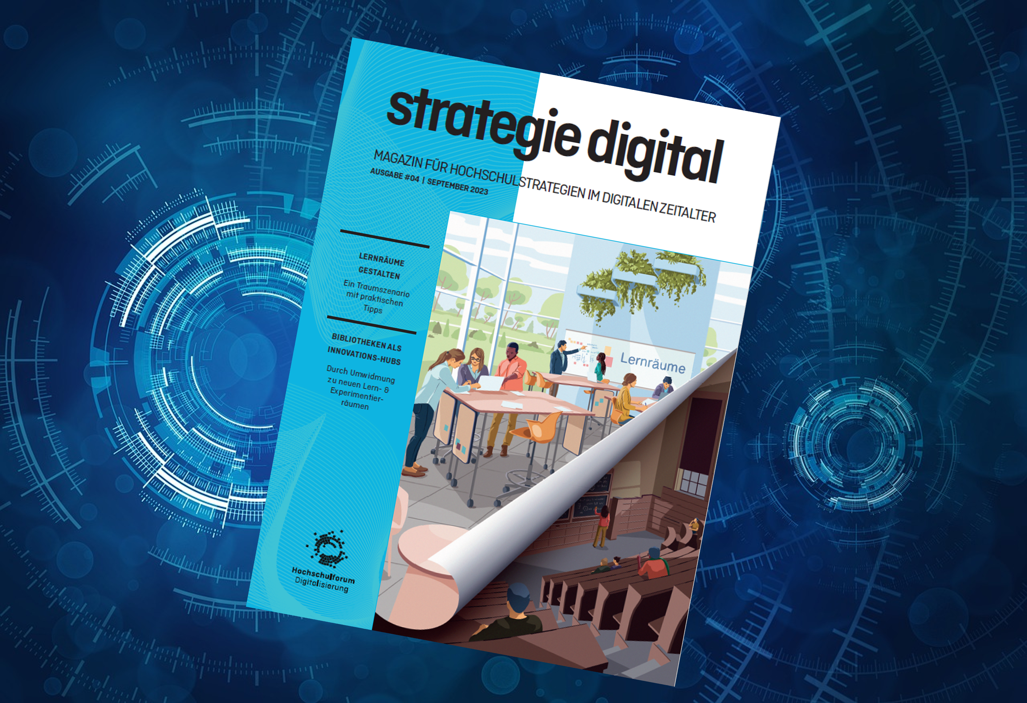 HFD-Magazin „strategie digital“ zu zukunftsorientierten Lernräumen Beitrag vom 26. September 2023 von Josephine Sames Die vierte Ausgabe des Magazins strategie digital vom Hochschulforum Digitalisierung (HFD) widmet sich dem Themenschwerpunkt „Zukunftsorientierte Lernräume”. Auf knapp 100 […]