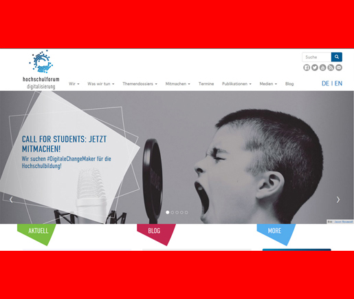 Hochschulforum Digitalisierung – HFD 2020 Projekt [vc_row][vc_column][vc_column_text]Das Hochschulforum Digitalisierung (HFD) ist ein deutschlandweiter Think Tank zur Digitalisierung der Hochschulbildung. Als zentraler Impulsgeber informiert, berät und vernetzt […]